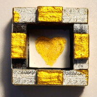 For this box, I hand and spray painted the pieces 11 different colors. Here is a photo of my work in progress: