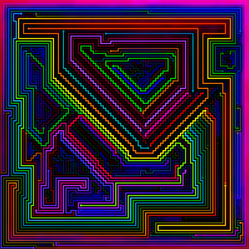 This project evolved from the level generator I wrote for my puzzle games. When I used my program to create levels larger than those in my games, I found the results so interesting that I focused my development into turning my level generator into an art generator. Most of the resulting images have two layers: one for the lines, and a background similarity shading layer based on Similarity Maps.