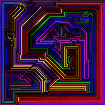 This project evolved from the level generator I wrote for my puzzle games. When I used my program to create levels larger than those in my games, I found the results so interesting that I focused my development into turning my level generator into an art generator. Most of the resulting images have two layers: one for the lines, and a background similarity shading layer based on Similarity Maps.
