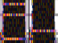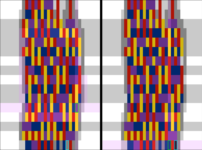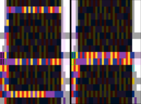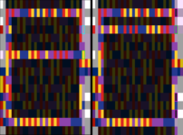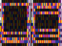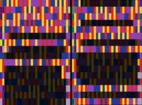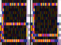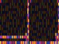 The program has now completed three-quarters of three-quarters of the distribution sets. Only the adjacency rules and a minor bug (see: the stray purple cell in the bottom right) have caused it to stray outside the 5th to 28th columns so far.
