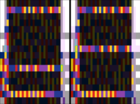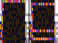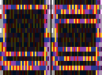 The program has now completed three-quarters of three-quarters of the distribution sets. Only the adjacency rules and a minor bug (see: the stray purple cell in the bottom right) have caused it to stray outside the 5th to 28th columns so far.
