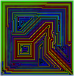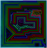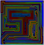 All of the levels for this gallery were generated with a new setting that adds some randomness at the cost of speed. This made it even slower than 100×100 – from about 1000 levels per day to 600 per day on my machine. That is why I experimented with Amazon Web Services. A virtual machine on AWS ran for 5 days, generating 5266 levels at a cost of 86 dollars. The rate of about 1050 levels per day is inflated since 40% of the levels were generated in 25% of the total processor time due to different settings that increased throughput.
