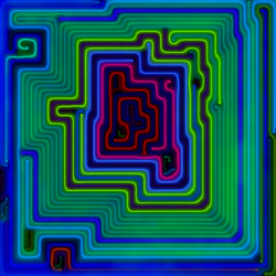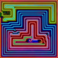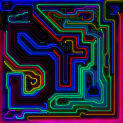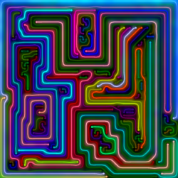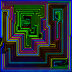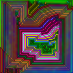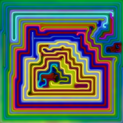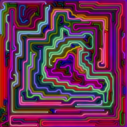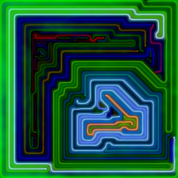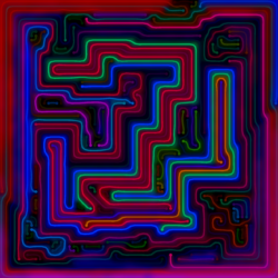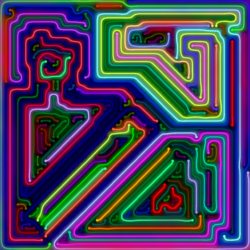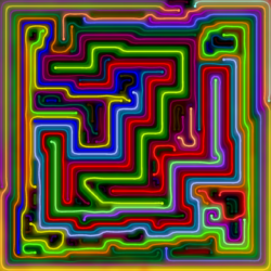 Notes: Sometimes the program gets lucky and randomly selects colors that look far from random. The four longest lines (medium red/blue/orange/green) in the enclosed bottom right area are a dead giveaway that I edited the line colors and lied about it, except that I didn’t.
