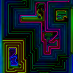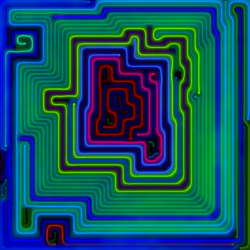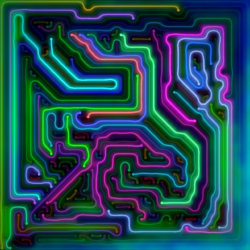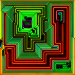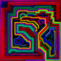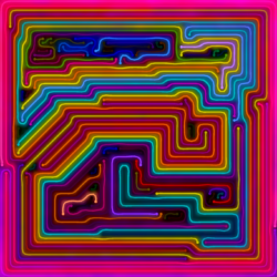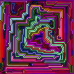 Notes: Sometimes the program gets lucky and randomly selects colors that look far from random. The four longest lines (medium red/blue/orange/green) in the enclosed bottom right area are a dead giveaway that I edited the line colors and lied about it, except that I didn’t.