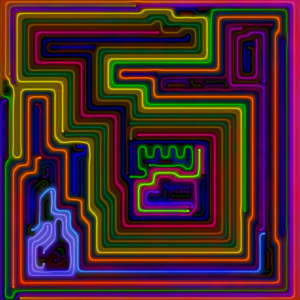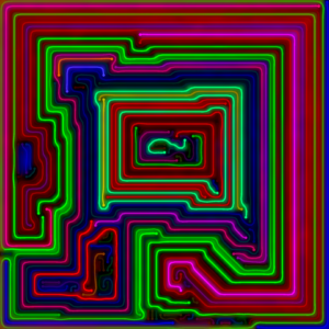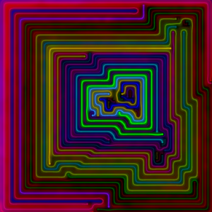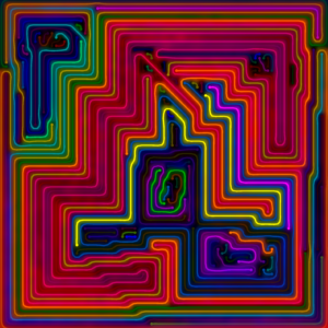 My program generated 36 images for each of the 33 levels with randomized line colors and I picked my favorite 1-3 images for each.