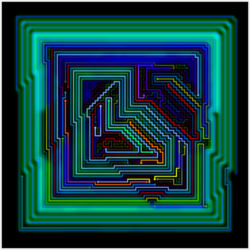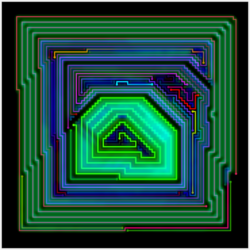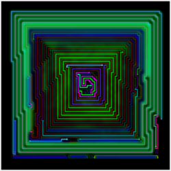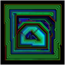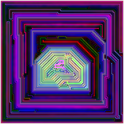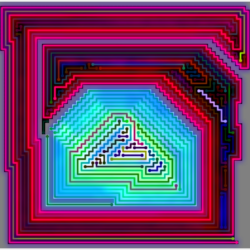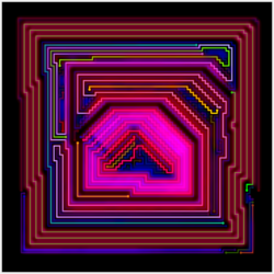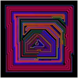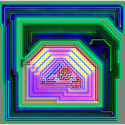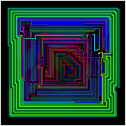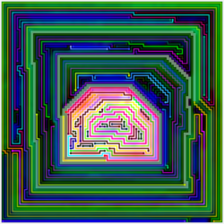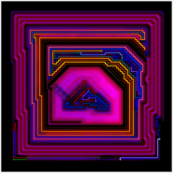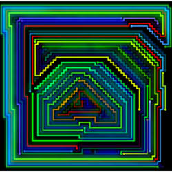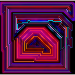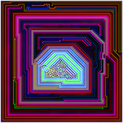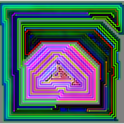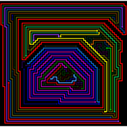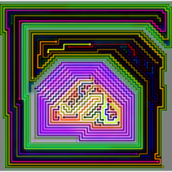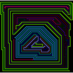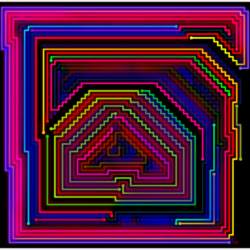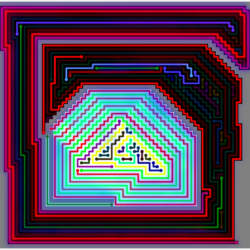 - The full-sized board with only the first 3 lines generated for “The Secret Pyramid” – the cyan line was the 4th line (91×91)
