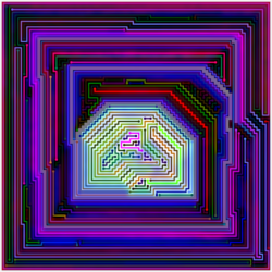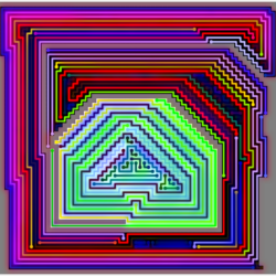 - The full-sized board with only the first 3 lines generated for “The Secret Pyramid” – the cyan line was the 4th line (91×91)