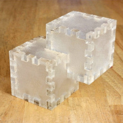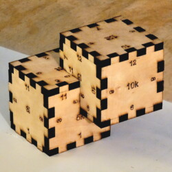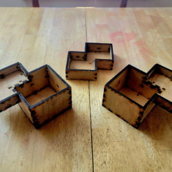 There are two main versions of the design – a single piece design with 12 pieces and a split box design with 20 pieces (and optionally, an 8 piece lip that holds the two parts of the box together). The gallery below includes images of seven Relativity boxes that I made.