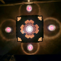 A 108-sided wooden box that approximates the shape of a sphere, with labels on the outside to demonstrate the software and assembly.