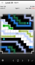 In The River, the differences between the levels of each of the 30 designs are subtle. You will see some common patterns in the lines, but they are rarely obvious. The levels are hard, but not unfair if you are willing to use hint mode at times.